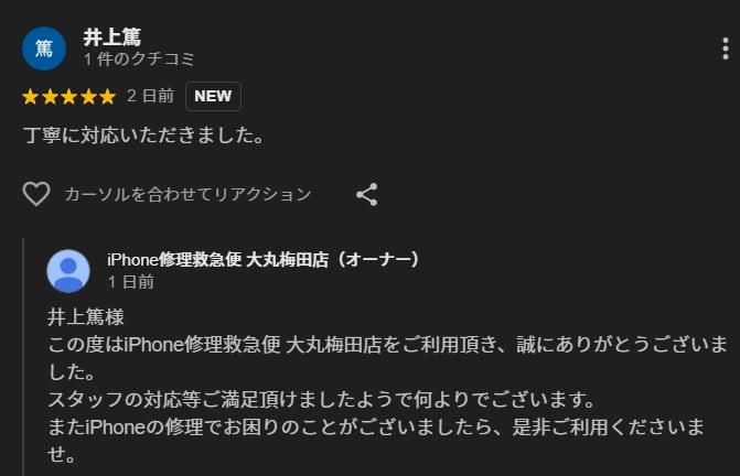 例えば1年前に修理してクチコミを書いてくれた方が本日修理しクチコミ投稿をしていただけると編集された状態で時間が記載されます。